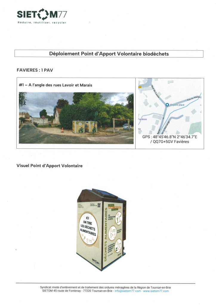 La livraison et l’installation du PAV Biodéchets se fera le jeudi 27 novembre dans la journée.